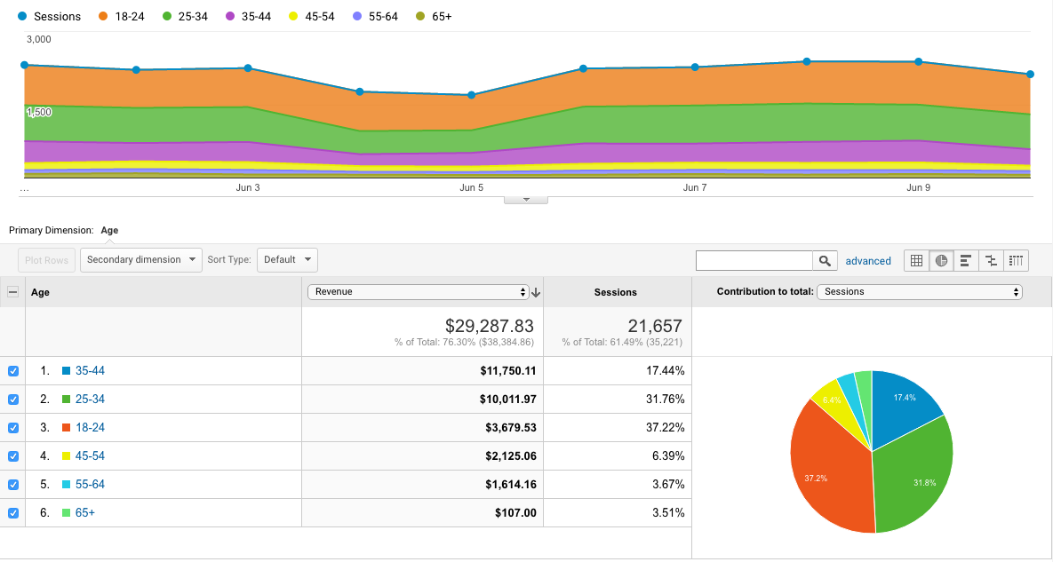 - Google Analytics ยังสามารถบอกได้ว่า คนที่เข้ามาที่เว็บไซต์นั้นเป็นผู้ชายหรือผู้หญิง มีอายุประมาณเท่าใด ข้อมูลนี้จะทำให้เราทราบว่าใครเป็นกลุ่มเป้าหมายหลักที่สร้างยอดขายมากที่สุด ใครเป็นกลุ่มที่เราต้องให้ความสนใจมากขึ้น